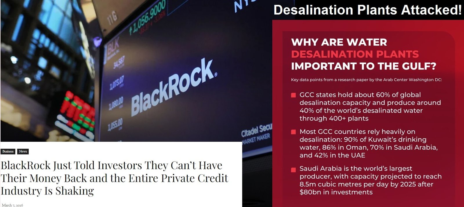 The Iran war turned apocalyptic this weekend as both sides allegedly began attacking and destroying desalination plants that convert seawater into potable water, which is essential for life in the desert and desert states of the Persian Gulf (I lived there for 4 years in the 1990s).